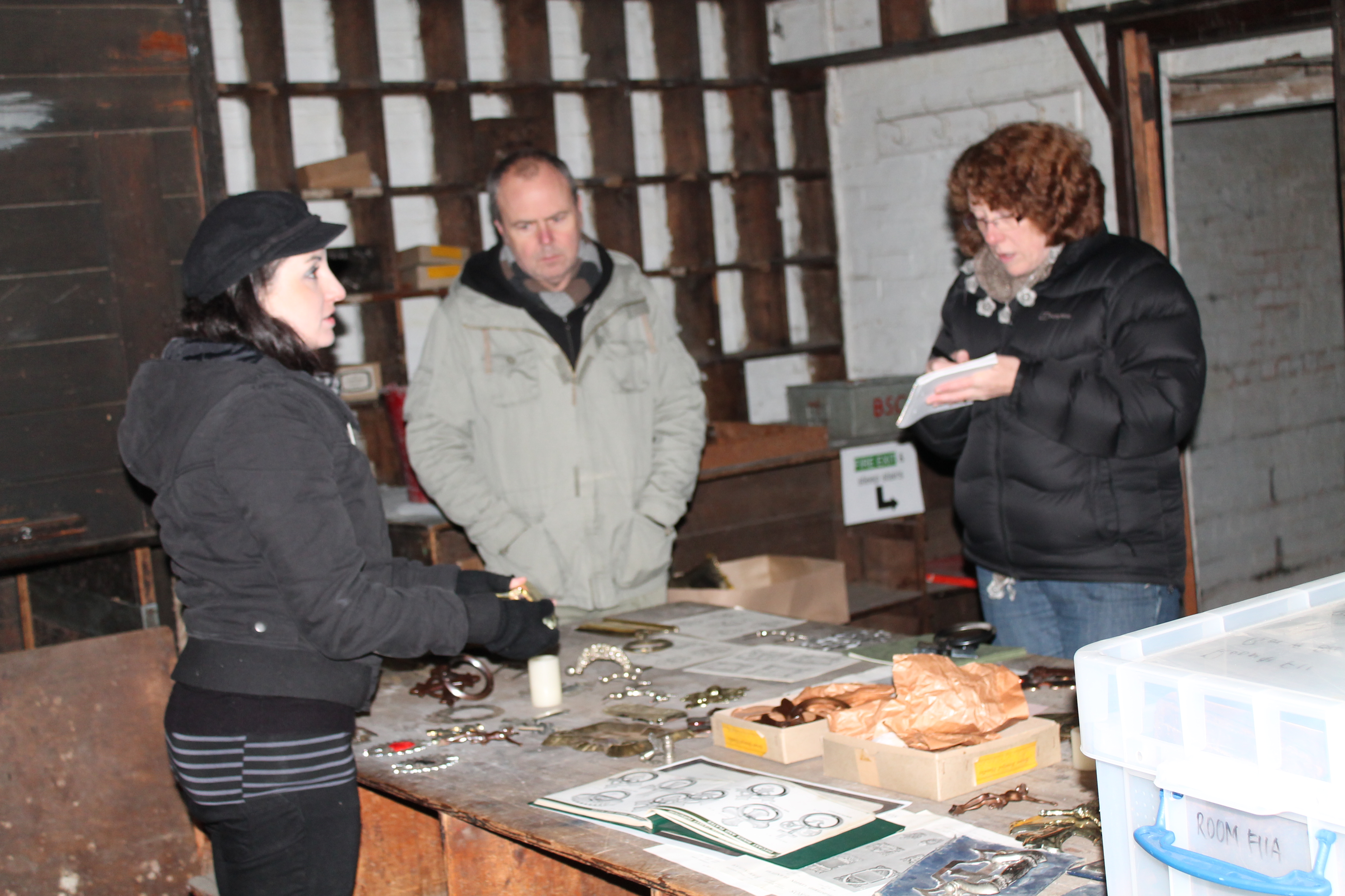In readiness for the start of the tours, more of our wonderful volunteers have been trained as tour guides and last Saturday our more experienced tour guides Barbara and Michael spent the afternoon with Steve, Janine, Rachel and myself to get us ready for leading groups of visitors around our Coffin Fitting Works over the next couple of weeks.